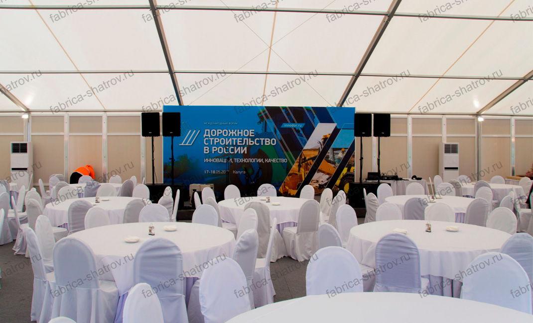 Покупая или арендуя у нас каркасно-тентовые конструкции Вы можете быть уверены в безупречном качестве наших изделий, а если Вам потребуется помощь на любом этапе эксплуатации шатра, то мы окажем вам активную поддержку в любой точке России на протяжении всего жизненного цикла нашей конструкции.