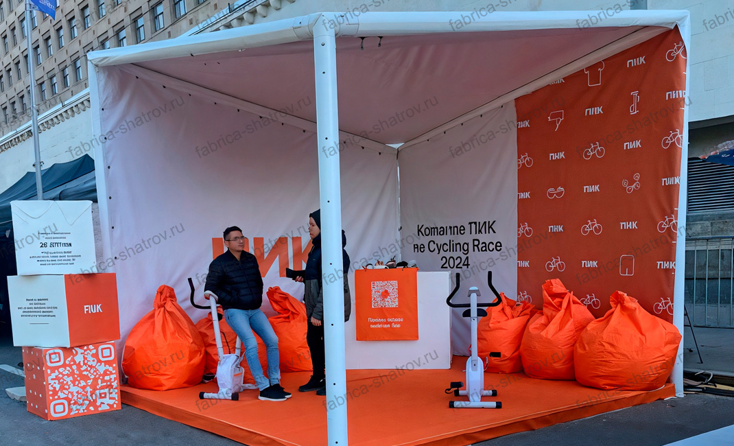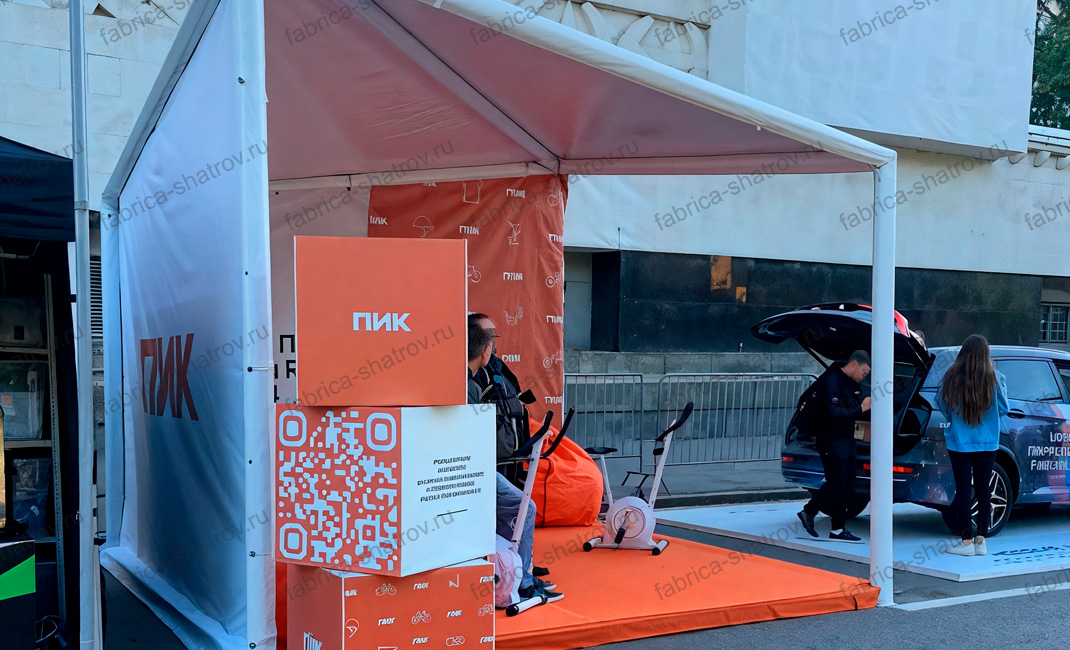 Каркас и полотно шатра Кайта может быть реализовано в белом или чёрном цвете. Возможно брендирование ПВХ-тента методом УФ-печати. Модульность Кайтов позволяет стыковать несколько изделий в разные геометрические формы создавая при этом оригинальное общественное пространство. Шатры Кайты хорошо подходят для организации зон отдыха или выставочного стенда на выездных мероприятиях.