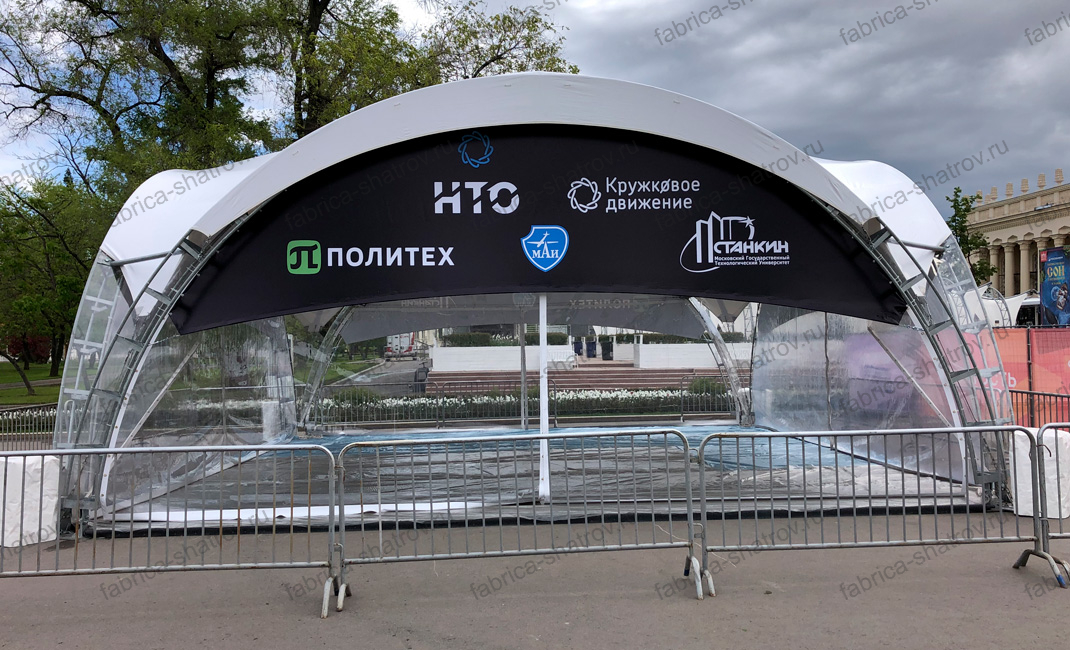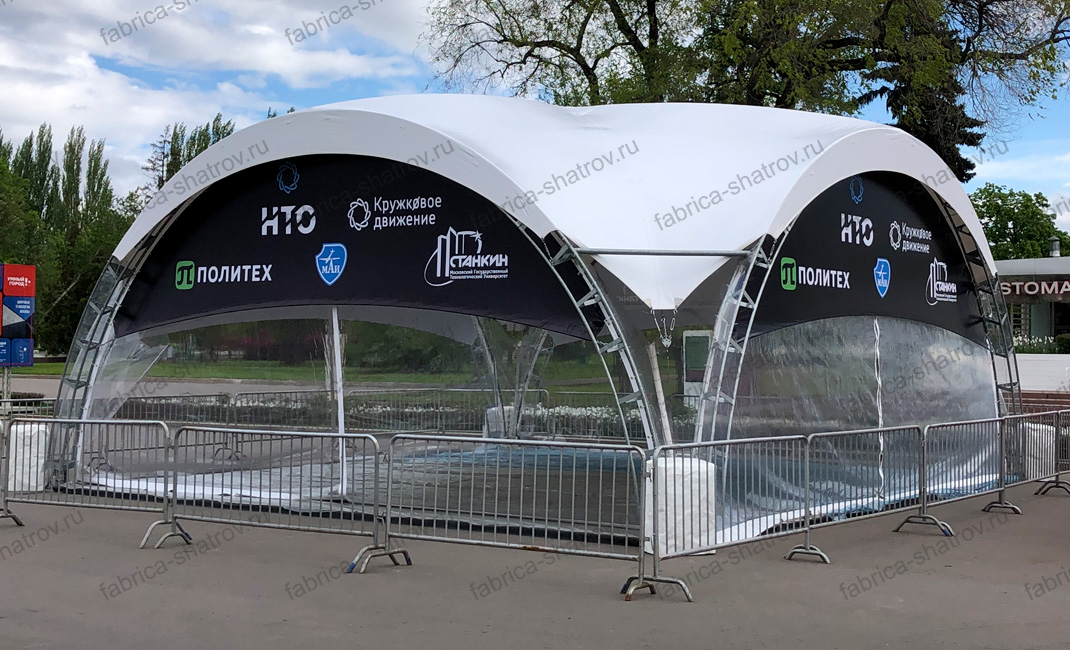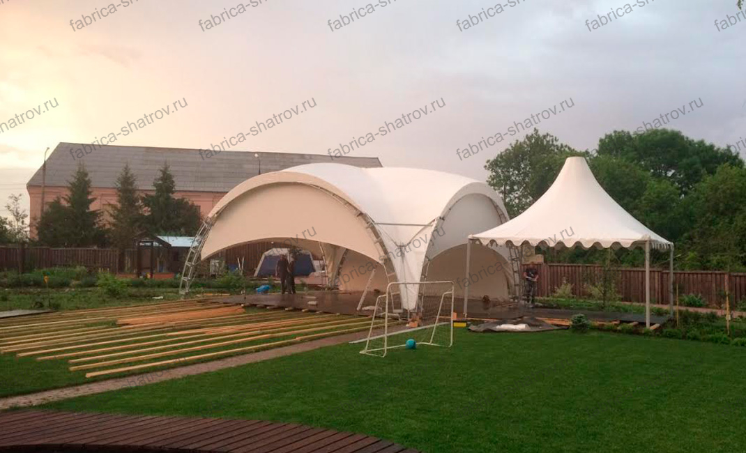 Арочная каркасно-тентовая конструкция типа «Дюна» на основе стального каркаса с защитой металла методом горячего цинкования. Арочные шатры часто применяются для проведения массовых и развлекательных мероприятий, фуршетов, банкетов, организации посадочных мест в точках общественного питания и для других целей. Преимуществами конструкции является лёгкий вес, быстрая сборка, длительный срок службы, сборно-разборная конструкция. Дополнительные опции позволяют создать необходимый уровень комфорта вплоть до использования шатра в круглогодичном варианте. Шатры типа «Дюна» можно часто увидеть в составе временной инфраструктуры при комплексной застройке каркасно-тентовыми конструкциями площадки для проведения масштабных мероприятий.
