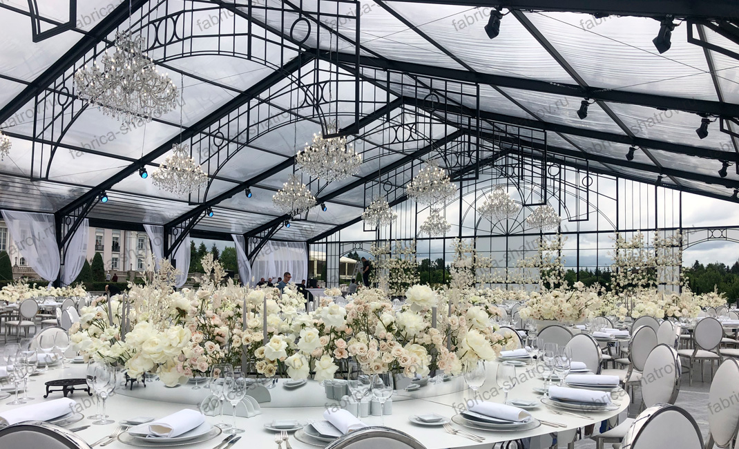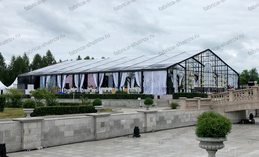 Все двускатные шатры производства «Фабрики шатров» комплектуются качественными армированными тентами ПВХ высокой плотности с двухсторонней пропиткой от гнили и плесени и защитой от УФ-излучения. Это значительно продлевает общий срок службы шатра и минимизирует затраты на обслуживание и ремонт каркасно-тентовой конструкции. Прочный каркас из анодированного алюминия выдерживает значительные снеговые нагрузки позволяя эксплуатировать наши шатры в любых климатических зонах с минимальным вниманием к конструкции. При необходимости любой шатёр нашего производства может комплектоваться широким рядом дополнительных опций, как в момент покупки, так и уже после проведения монтажа шатра. Мы предлагаем варианты для летнего и зимнего использования. Целевое назначение шатра может быть разным, от временного жилого помещения со сроком службы 10 и более лет, до холодного склада и тепляка для проведения строительных и монтажных работ в зимний период.